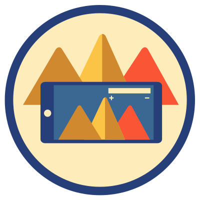 Illustrated icons for Cahokia Mounds Augmented Reality Project, where the user can view what the grounds really looked like in Pre-Columbian times from the top of the 10-story Monks Mound. Read more here.